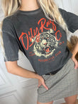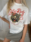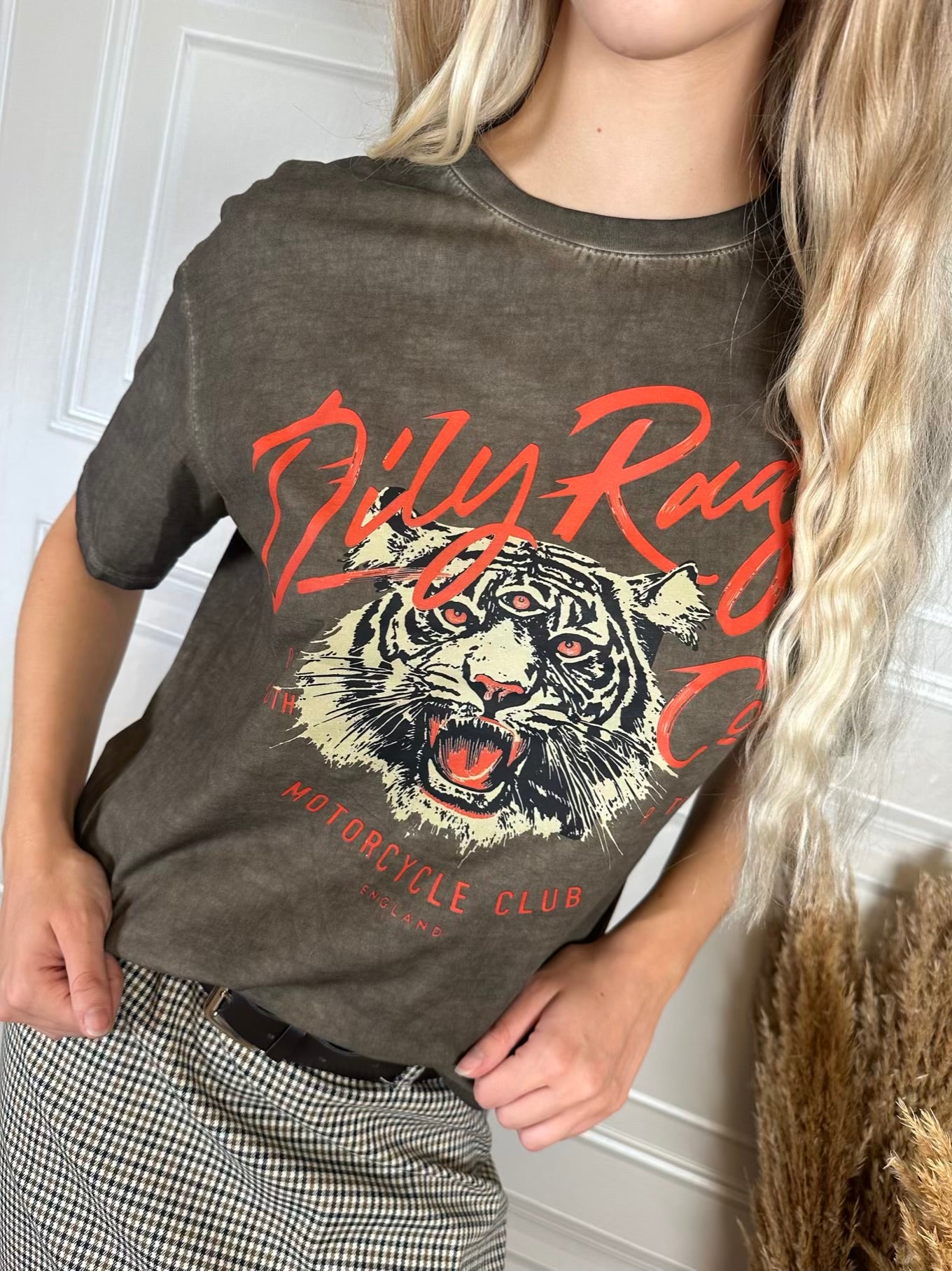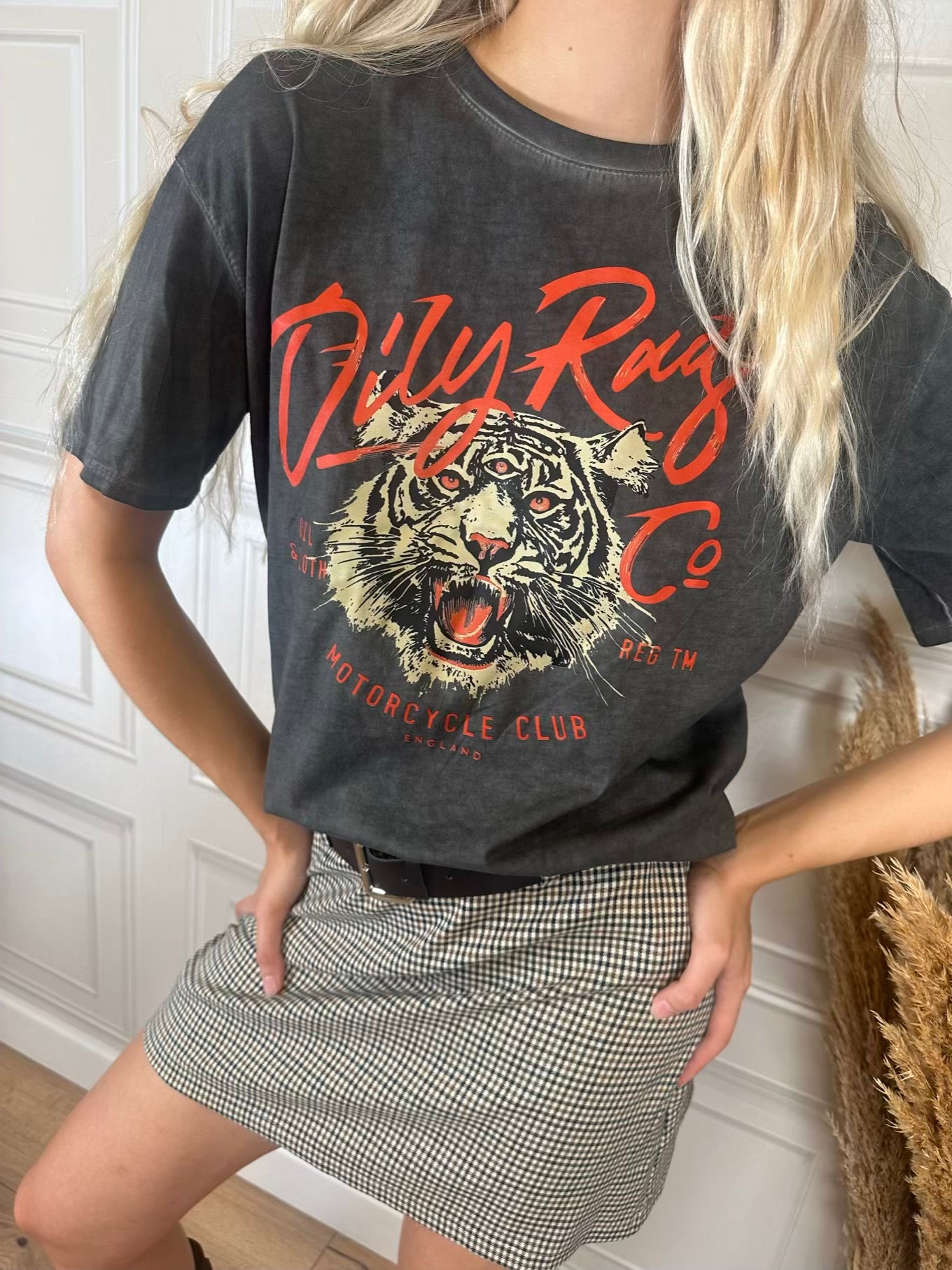 T-shirt girocollo in cotone con stampa. Taglia unica, modello oversize con spalla scesa.