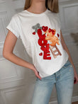 T-shirt girocollo in cotone con stampa e ricamo di strass. Taglia unica.