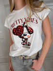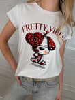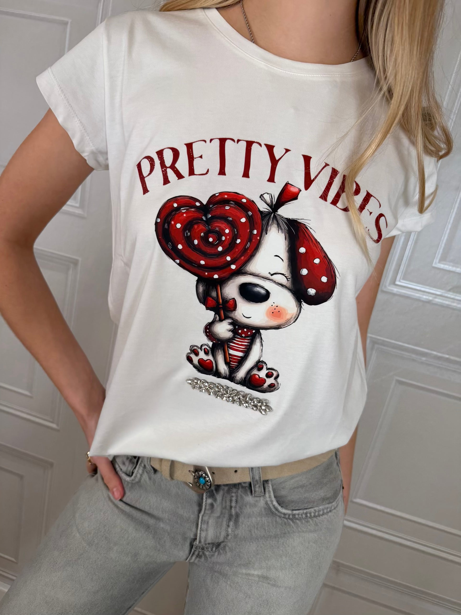 T-shirt girocollo in cotone con stampa e ricamo di strass. Taglia unica.