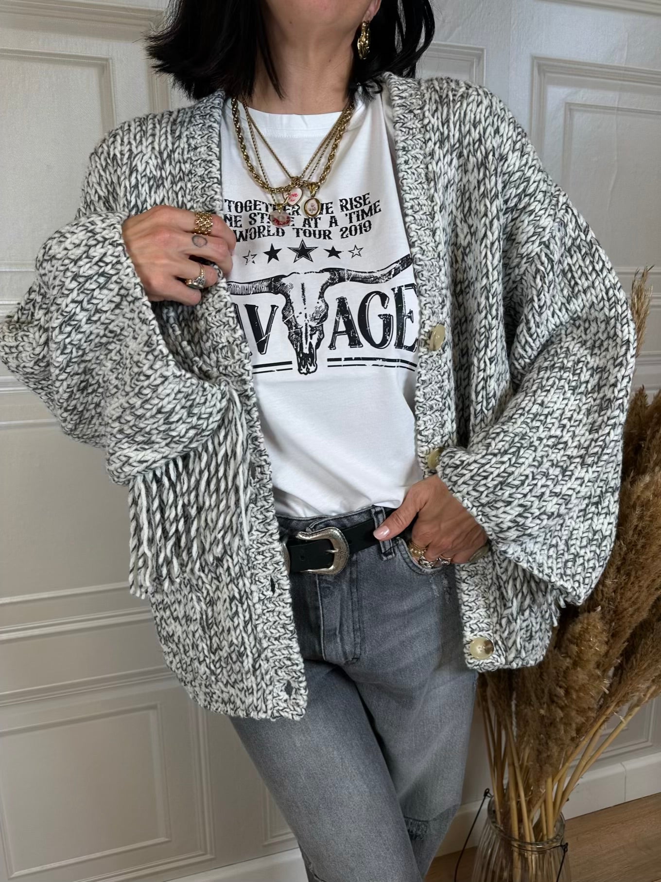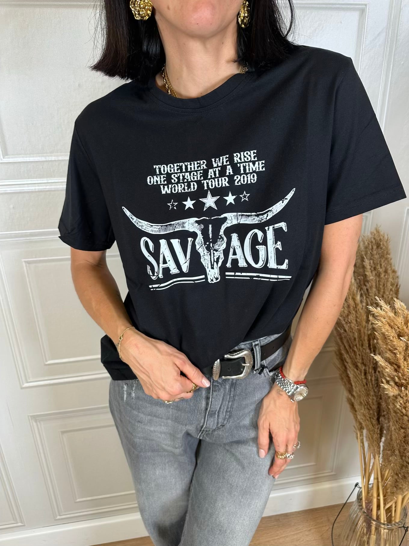 T-shirt girocollo in cotone con stampa. Taglia unica, modello regolare.