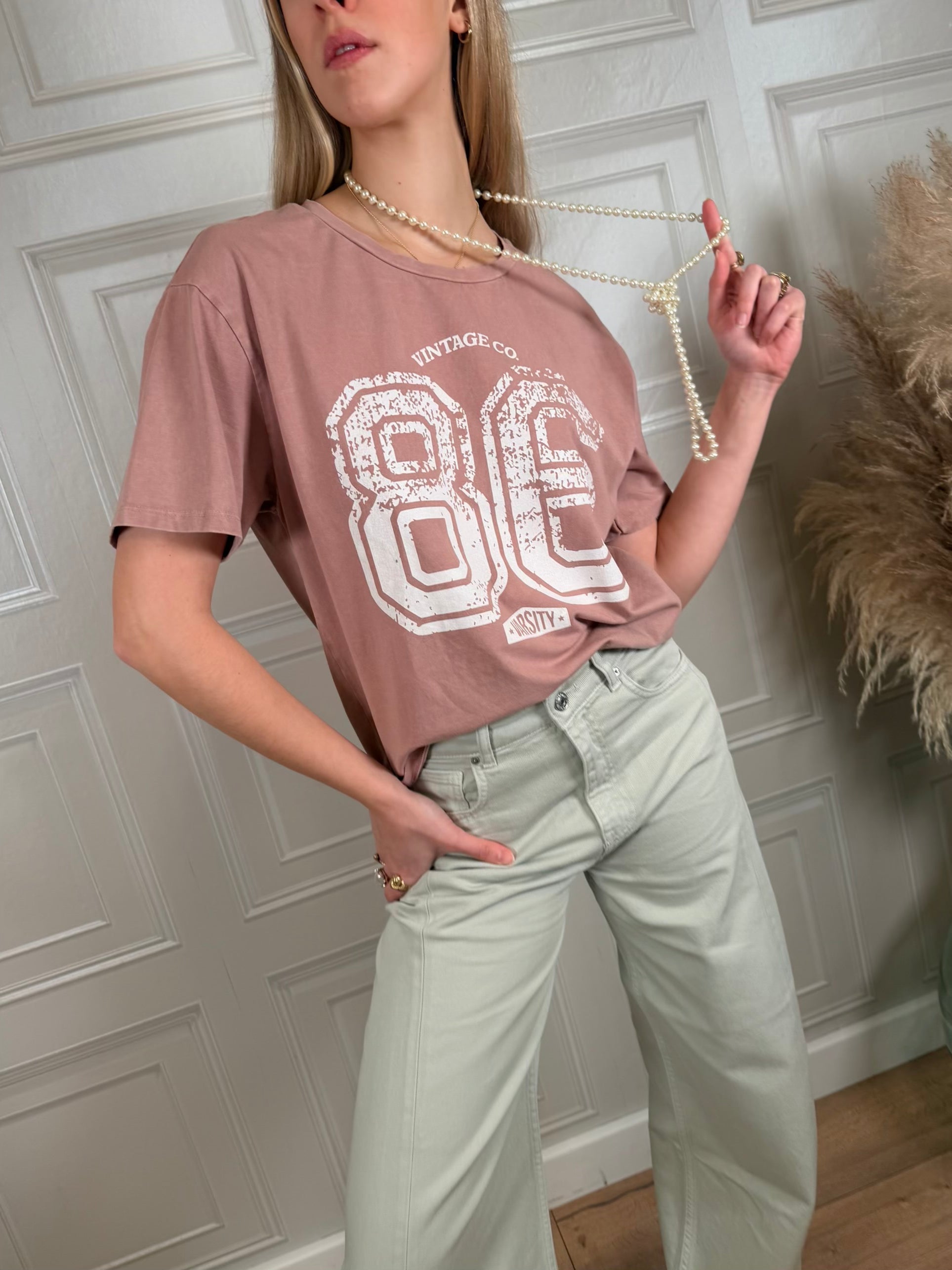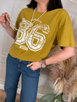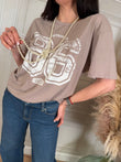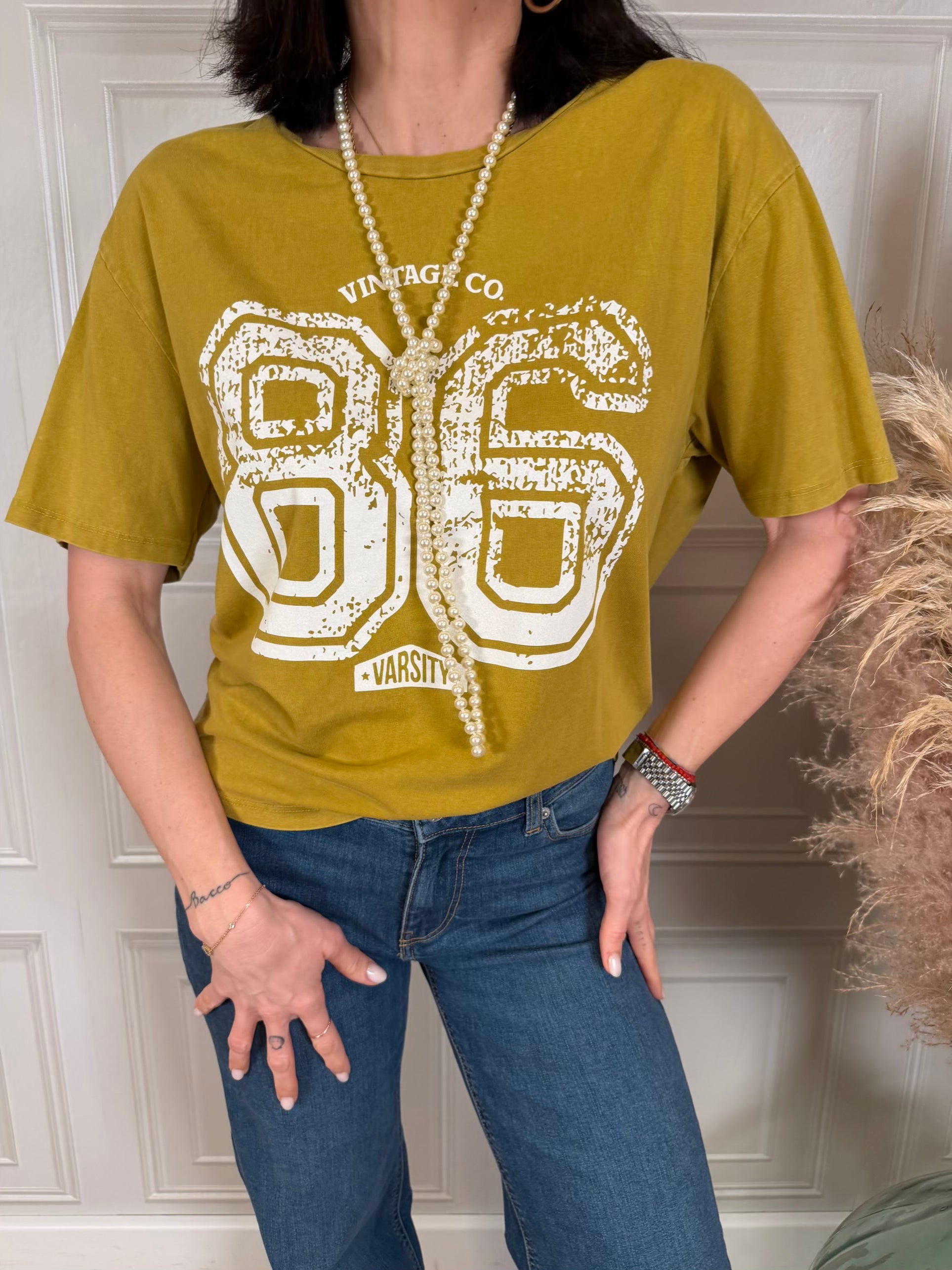T-shirt girocollo in cotone con stampa. Collana in perle inclusa.