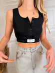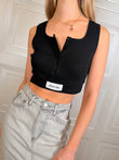 Top a girocollo a costine. Modello crop con chiusura a bottoncini sul fronte. In foto taglia S. Vestibilità regolare.