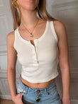 Top a girocollo a costine. Modello crop con bottoncini sul fronte. Taglia unica. Vestibilità regolare.
