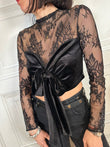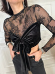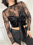 Top in pizzo manica lunga con vellutto . Modello crop. Vestibilità regolare, in foto taglia S.