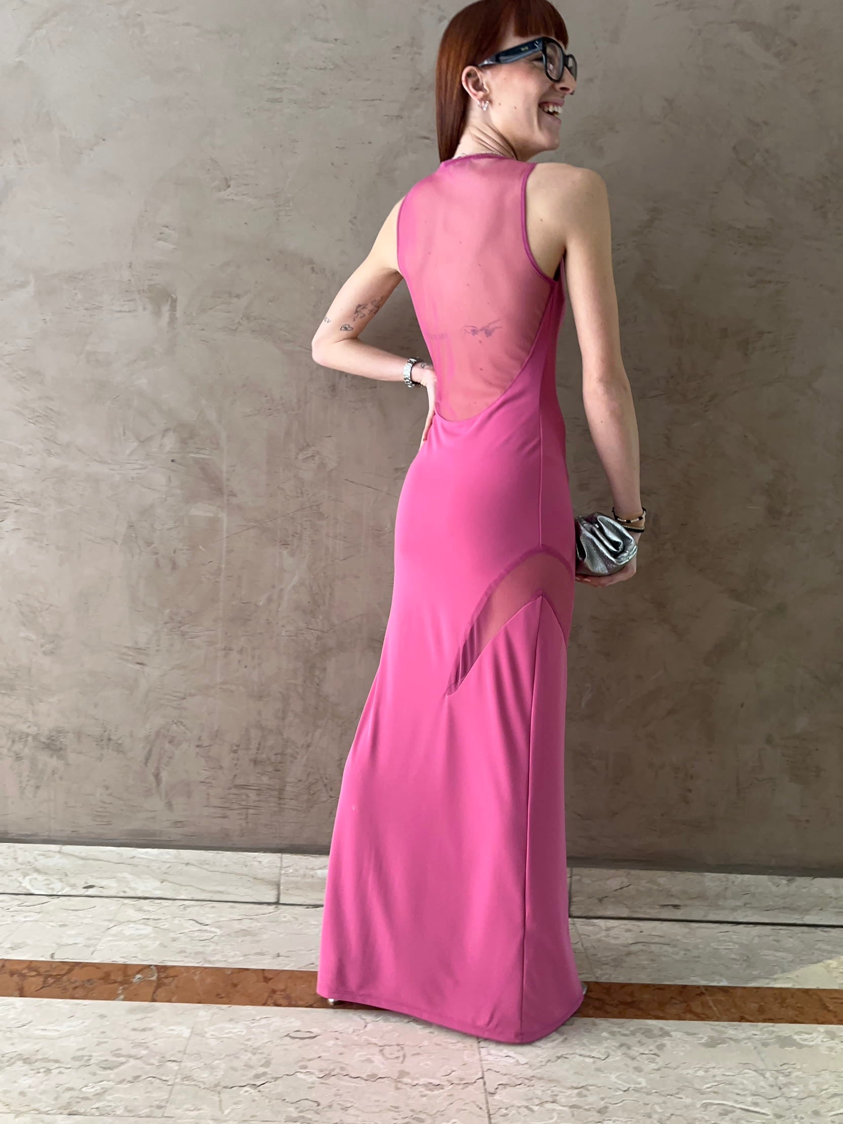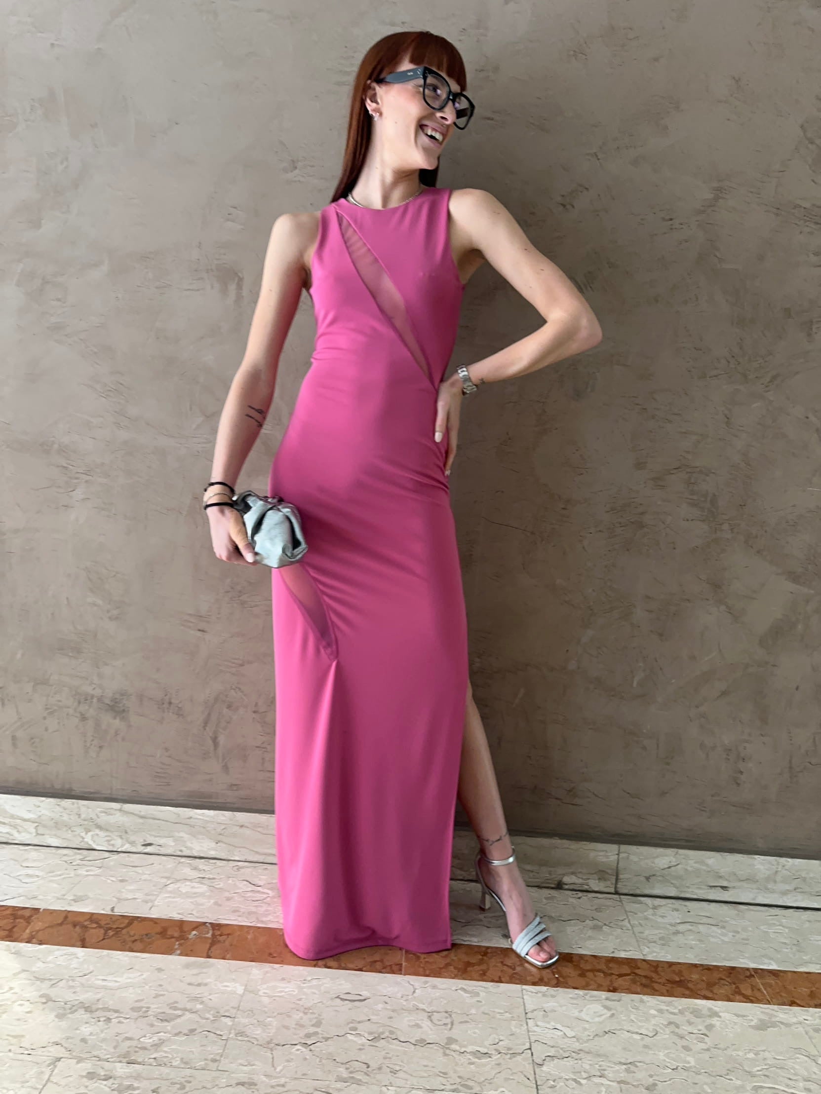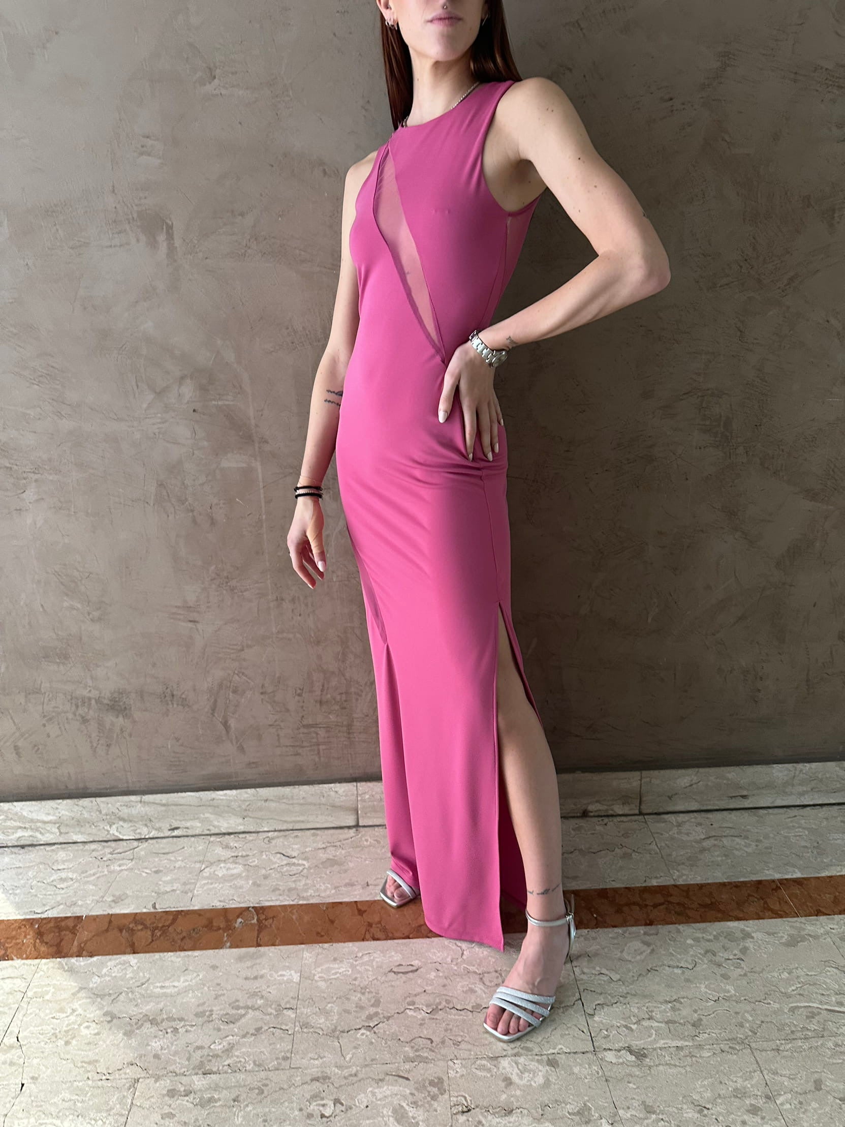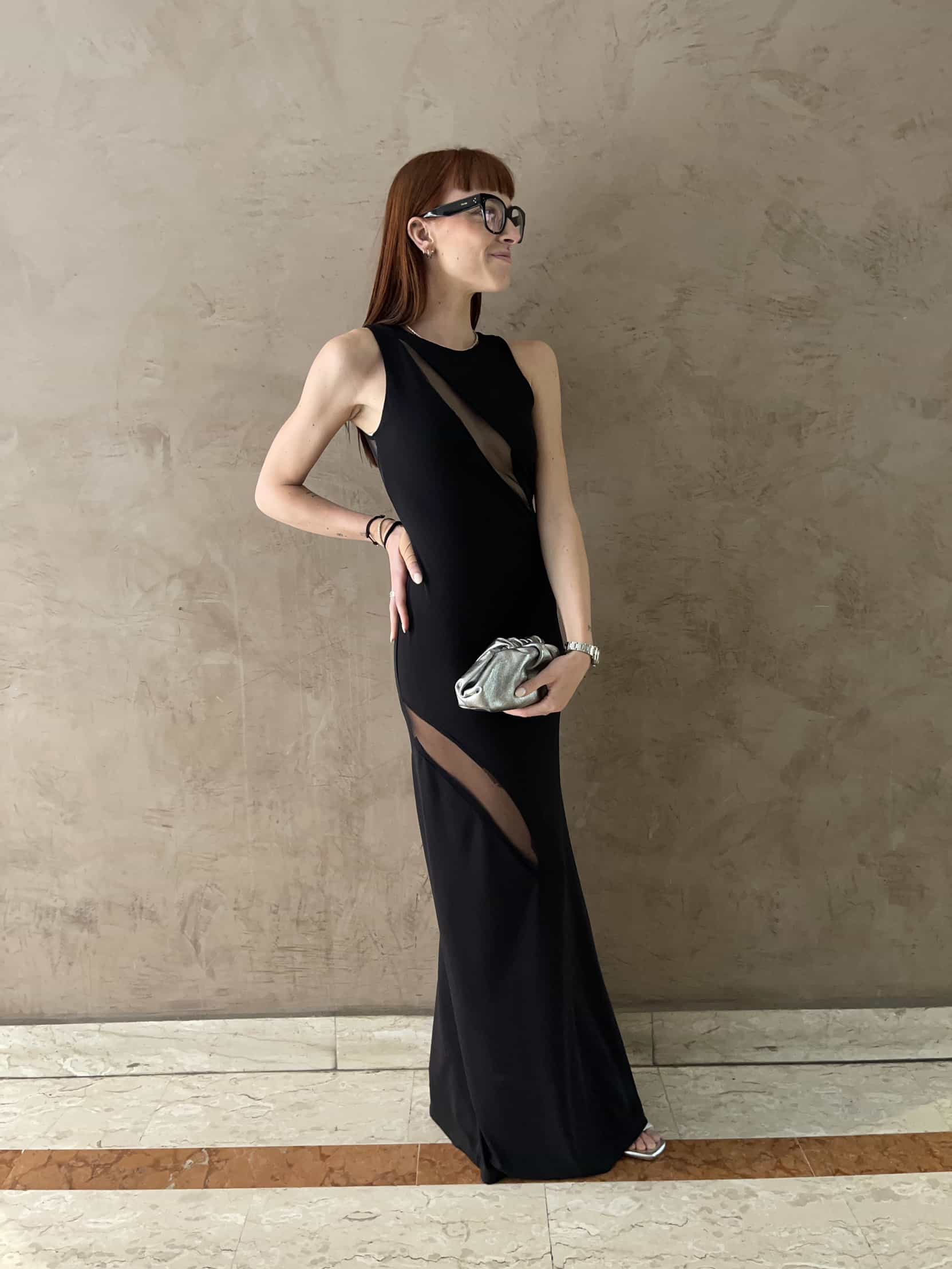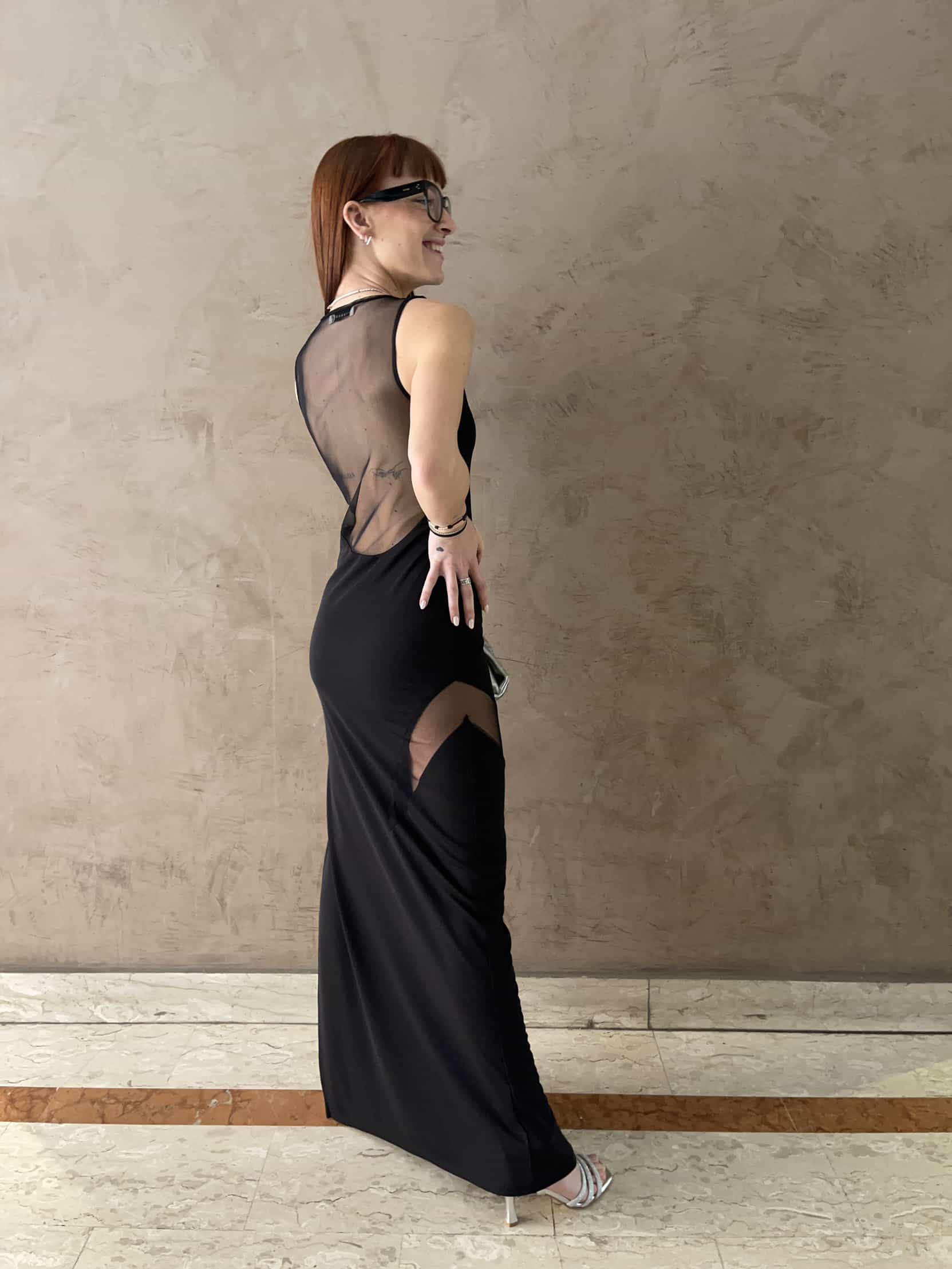 Vestito con cut out velati. Modello girocollo elasticizzato.